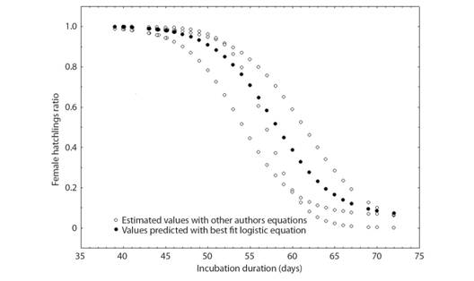 Candan, O., &Kolankaya, D. (2016). Sex ratio of green turtle (Chelonia mydas) hatchlings at Sugözü, Turkey: higher accuracy with pivotal incubation duration. Chelonian Conservation and Biology, 15(1), 102-108.