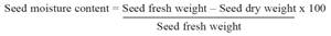 Seed moisture content: Seed fresh weight of five replicates each with 15 seeds was determined from the apex, centre, and base of the infructescence this procedure was repeated for each sample date. Seeds were kept at 50 ± 1 °C in an oven until they reach constant weight (5 d). Seed moisture content was calculated using the following expression (International Seed Testing Association, 2010).