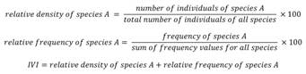 Data analysis: We used the importance value index (IVI) (Curtis & McIntosh, 1951) as a measure of invasiveness of a species. IVI is considered a good indicator of the functional importance of a species in a community, as it is based on relative density and frequency values expressed as percentages per transect (Catford et al., 2012; Curtis & McIntosh, 1950):