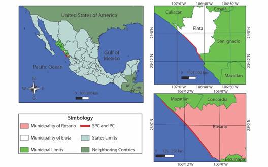 Study site: The study was conducted on two nesting beaches: SPC and PC. SPC is 37 km long and is located between the Cospita Estuary to the North (23°05’40” N & 107°11’42” W) and the Elota River to the South (23°52’43” N & 106°55’51” W); it is in the central region of the state of Sinaloa, Mexico, in the municipality of Elota (Fig. 1). SPC was declared a Reserve and Refuge Zone for the Protection, Conservation, Repopulation, Development and Control of Various Species of Sea Turtles (DOF, 1986) and as a sanctuary for olive ridley turtle nesting (CONANP, 2018; DOF, 2002). PC was designated a biological station in 1986; it is approximately 39 km long and is located between the mouth of the Presidio River to the North (23°05’29” N & 106°17’19” W) and the mouth of the Baluarte River to the South (22°50’15” N & 106°02’26” W); it is in the Southern region of the state of Sinaloa, Mexico, in the municipality of Rosario (Fig. 1). PC is not yet legally designated as a protected beach.