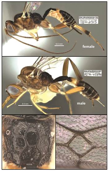 Sharkey, M.J., Baker, A., McCluskey, K., Smith, A., Naik, S., Ratnasingham, S., Manjunath, R., Perez, K., Sones, J., D’Souza, M., St. Jacques, B., Hebert P., Hallwachs W., & Janzen, D. (2021). Addendum to a minimalist revision of Costa Rican Braconidae: 28 new species and 23 host records. ZooKeys, 1075, 77-136. doi: 10.3897/zookeys.1075.72197