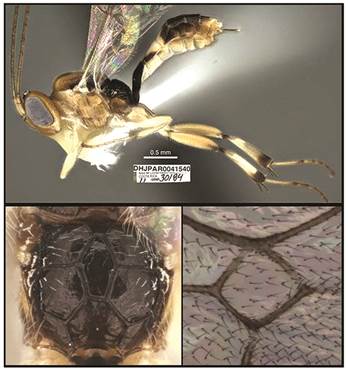 Holotype host data: Hyperparasitoid of Hypomicrogaster largus (Braconidae: Microgastrinae), which is a primary parasitoid of Anadasmus Janzen11 (Depressariidae) feeding on Ocotea puberula (Lauraceae). Multiple Mesochorus specimens eclosed.