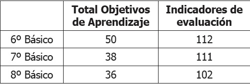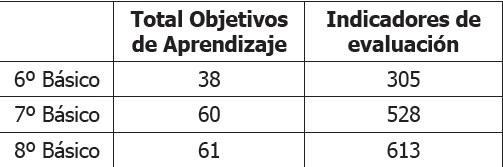 Un balance cuantitativo (y resumido) del total de prescripciones curriculares relacionadas con el aprendizaje, considerando sólo Objetivos e Indicadores (sin la subdivisión por dimensiones), nos da una dimensión de la magnitud de los logros que se busca alcanzar para toda la población escolar, independiente de sus diferencias y contextos. En los siguientes cuadros se muestran ejemplos de la cantidad de objetivos e indicadores anuales en algunas asignaturas y niveles de enseñanza de la educación básica (MINEDUC, 2011), mostrando que este es un fenómeno no solo asociable a Enseñanza Media.