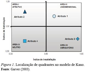 O modelo de Kano é utilizado para classificar alguns atributos do produto e/ou serviço (Roos et al., 2009). Kano et al. (1984) apresentam modelo com atributos de desempenho superior e/ou inferior, que identificam atratividade, e obrigatoriedade. Se houver grau de desempenho suficiente, não trará satisfação), unidimensionalidade (maior será a satisfação do cliente e vice-versa, quanto maior o grau de desempenho), neutralidade (não resulta em satisfação ou insatisfação no cliente) ou reversibilidade (alto grau de desempenho que pode resultar na insatisfação (e vice versa, o baixo grau de desempenho resultando na satisfação))