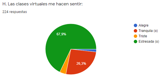 Las consecuencias ocasionadas por la etapa de emergencia sanitaria y las clases virtuales son preocupantes, ya que los alumnos sienten sensaciones que no les permiten sentir felicidad, además se evidencia que los universitarios necesitan vivenciar que la vida está llena de experiencias positivas, estos resultados refieren la necesidad de intervenciones que contribuyan en la construcción de la felicidad.