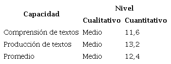 El nivel de desarrollo de capacidades de comprensión y producción de textos en los estudiantes universitarios es medio, evidenciando la necesidad de fortalecer la competencia comunicativa a través de diversas acciones, siendo una de ellas la implantación de una educación literaria en toda la Universidad, quedando muchos aspectos por investigar en relación a este tema.