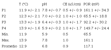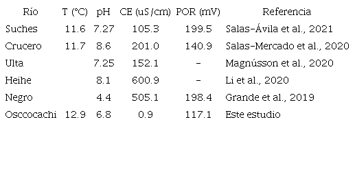 En la tabla 4 se muestran los niveles promedio de los parámetros fisicoquímicos considerados en este estudio comparados con los hallazgos de otras investigaciones realizadas en zonas con influencia minera en el Perú y en el mundo.