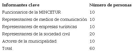En la determinación de la muestra, se considera, el tipo de muestreo probabilístico, lo cual consiste, en que todas las unidades de observación tienen la misma probabilidad de ser elegidos como informantes clave. En sistematización de datos se utiliza el software Microsoft Excel, para la selección de la muestra se considera a 60 encuestados que son: funcionarios del MINCETUR, representantes de medios de comunicación, empresas turísticas, actores de la municipalidad provincial de Puno y la sociedad civil.