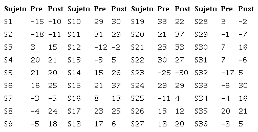 En la Tabla 2, se observa diferencias en los puntajes de 24 de los 36 participante a favor de la post intervención (ver puntajes resaltados), lo que implica la presencia de cambios en su nivel de asertividad.
