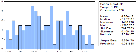 Para corroborar si los resultados encontrados a través del modelo econométrico son confiables, se procedió evaluar el supuesto de normalidad y el supuesto de homocedasticidad que debe cumplir cualquier modelo econométrico.