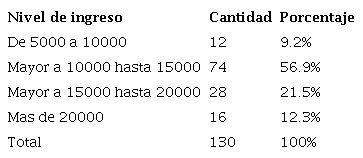 La investigación se desarrolló en la Región Amazonas-Perú, en la que a través de los instrumentos para recoger la información se obtuvo datos reales de cada variable que se quiso estudiar, gracias a la colaboración de los agricultores encuestados. La tabla 2 muestra el nivel de ingreso en promedio anual que obtienen los agricultores en la región Amazonas.