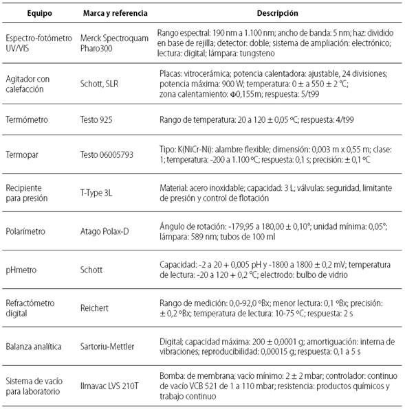 Las variables de respuesta analizadas fisicoquímicamente en jugo, miel y panela, así como el principio y la norma usada para su medición experimental se muestra en la tabla 3.