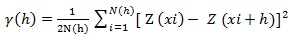 [Equation 1]Where: γ (h): estimated semivariance between point pairs; N(h): number of pairs of measured values; Z(xi), Z(xi + h): pairs of points separated by a distance h.