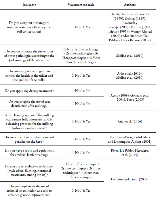 Besides, a review of the variables used by producers and managers of sheep farms in Castilla-La Mancha was carried out to establish an analogy with the information obtained during the assessment. These variables were justified by the review and are considered as indicators of different types of capabilities. For the analysis of the variables, the database generated between June and September 2012 was used (Rivas, Perea, et al., 2015).
