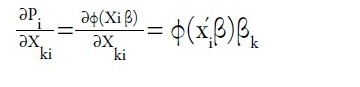 Para una variable no dicotómica, la probabilidad marginal se define por la derivada parcial de la probabilidad de que y = 1 con respecto a esa variable. De esta forma, el cambio marginal se obtiene del producto de la función de densidad de la distribución normal estándar evaluados en un punto definido y el parámetro a evaluar (Greene, 2012), como se expresa en la ecuación 3.