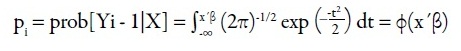 [Equation 1]Where ϕ(x´β) represents the cumulative distribution of a standard normal variable (Greene, 2012).