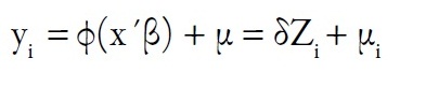 [Equation 3]The evaluation of the marginal change is performed in the mean values of the regressors, so that a representative value of the marginal change is obtained. The maximum likelihood method was used to estimate the parameters of the proposed econometric model.