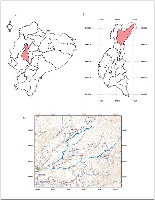 Los límites del área de estudio son los siguientes: al norte, se encuentra la provincia de Cotopaxi, reserva los Ilinizas; al sur, el cantón Valencia; al este, Cotopaxi, y al oeste, Santo Domingo de los Tsáchilas. El área forma parte de la zona ecológica de bosque húmedo tropical, de topografía irregular, con altas pendientes, con una altura de entre 250800 m s. n. m., una precipitación media por año de 2.700 mm y una temperatura media por año de 24 °C (Matamoros, 2015).