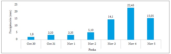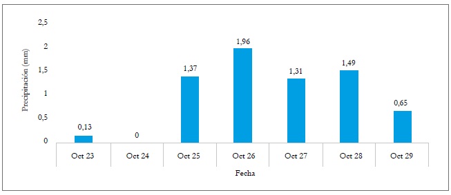 Algo que pudo haber contribuido en estos resultados, fueron las precipitaciones frecuentes, que se presentaron en Pamplona y sus alrededores posteriormente a la aplicación, como puede obsevarse en la figura 4.