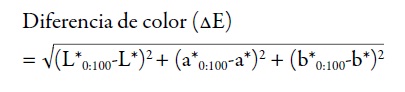 [Ecuación 3]La diferencia total de color se calculó de acuerdo con la ecuación 4 (Sivam, Sun-Waterhouse, Waterhouse, Quek, & Perera, 2011):