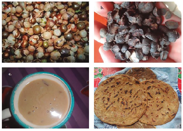 El maíz Zea mays L. (Poaceae) y el ramón Brosimum alicastrum Sw. (Moraceae) fueron en tiempos ancestrales las principales fuentes de alimentación de la población maya, quienes cultivaron extensivamente el árbol de ramón y lo utilizaron como parte de su dieta diaria (Ortiz, Azañon, Melgar, & Ellias, 1995; Peters & Pardo-Tejeda, 1982). El ramón es un cultivo subutilizado de alto valor nutricional, que puede mejorar la seguridad alimentaria al proveer un medio de subsistencia a la comunidad, ya que disminuye los riesgos de pérdidas por cambios ambientales, fluctuaciones en el precio, o enfermedades, además de promover la agricultura sustentable al reducir la necesidad de agua o combustibles y, sobre todo, por la preservación y celebración de la diversidad cultural (Lander & Monro, 2015). El uso de especies subutilizadas como el ramón es limitado por la falta de conocimiento sobre su manejo y forma de preparación para el consumo (Sánchez, Muschler, Prins, Solano, & Astorga, 2014). Las semillas de ramón hervidas o tostadas son comestibles, y se comen solas o con maíz, miel o plátano, o en forma de bebidas fermentadas o calientes como el atole. Tostadas y molidas, las semillas se usan como sustituto de café; además, de las semillas molidas se hace una harina negra usada para confeccionar pan o tortillas (figura 1). La semilla de ramón es de alta digestibilidad, con un considerable contenido de taninos y de fibra (Castro-González, Alayón-Gamboa, Ayala-Burgos, & Ramírez-Avilés, 2008), lo que la hace una fuente de ingredientes funcionales, como la fibra dietética y los antioxidantes.