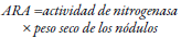 La masa nodular es un método indirecto en el que se relaciona el número de nódulos, su masa (Arshi, 2017), distribución en el sistema radicular (Thilakarathna & Raizada, 2018) y características estructurales (Akemi et al., 2017), con la capacidad de la planta para fijar nitrógeno, ya que los nódulos se desarrollan como consecuencia de la asociación simbiótica entre planta y bacterias, de modo que alta actividad de la nitrogenasa se asocia a un buen estado nodular. En esta técnica se recolectan muestras de plantas completas o solamente el sistema radicular en bolsas herméticas y se transportan en condiciones de refrigeración (4 °C); posteriormente, se realiza un análisis físico de la estructura de los nódulos que incluye color, integridad, tamaño y número total por planta; luego, los nódulos son separados de la raíz, se lavan con agua destilada, se desinfectan con peróxido de hidrógeno (30 %) por tres minutos y nuevamente se lavan con agua esterilizada; finalmente, se secan a 70 °C hasta alcanzar un peso constante, y después se pesan (Argaw & Mnalku, 2017; Yong et al., 2018). Sin embargo, cabe resaltar que el número y masa de los nódulos cambia de acuerdo con la edad de los cultivos leguminosos y factores como la sequía (Hashem et al., 2018), el manejo y la salinidad del suelo, que a su vez influyen en las funciones de simbiosis (De Andrade Albenísio, Bonifacio, Cerqueira, & Barreto, 2018) y modifican el desarrollo nodular. De este modo, la técnica tiende a ser poco precisa al requerirse muestras en todos los estados de las plantas y mantenerlas bajo las mismas condiciones con el objetivo de disminuir el error de muestreo, pero tiene las siguientes ventajas: 1) es un método económico, que no requiere de equipos complejos; 2) no necesita personal altamente calificado; 3) se obtienen resultados rápidos, y 4) es una forma indirecta de estimar la simbiosis efectiva de bacterias Rhizobium que se inoculan en los cultivos (De Andrade et al., 2018).