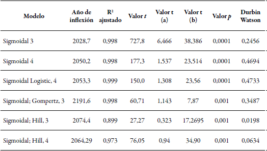 Nota: el estadístico t y los valores a y b pertenecen a los diferentes modelos logísticos.