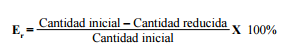 La tasa de eficiencia mínima de eliminación (Er) se usó como un indicador para evaluar las alternativas de tratamiento (Crites & Tchobanoglous, 1998). Se calcula con la formula que se muestra a continuación, en la que la cantidad inicial se refiere al valor del parámetro estudiado en el agua residual entrante y la cantidad de salida corresponde al valor del parámetro en el agua tratada. Solo las tecnologías que alcanzaron o sobrepasaron el Er establecido según la legislación correspondiente fueron consideradas en la presente investigación.