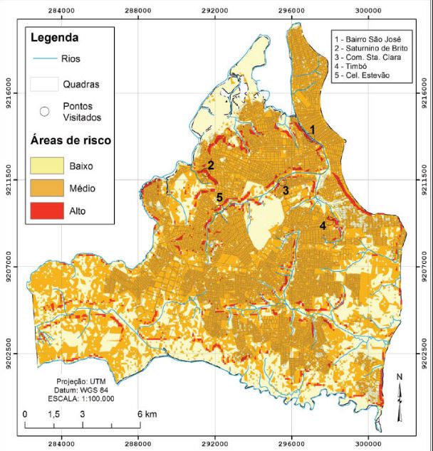 Nesse contexto, o risco surge como produto da associação entre as características naturais e os diversos tipos de usos, sendo intensificado pela ocupação desordenada, devido à ausência de planejamento urbano. Neste aspecto, o relevo constitui fator limitante à ocupação, sobretudo em unidades mais vulneráveis, tais como: planícies fluviais e vertentes.
