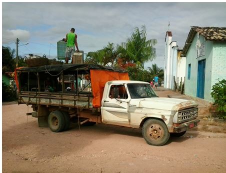 A principal forma de escoamento das hortaliças é por meio de transporte público (caminhão) gratuito fornecido pelo município aos sábados e aos domingos. Uma frequência de 47 famílias sinalizou se utilizar desse transporte para deslocar o produto da comunidade até a cidade para ser comercializado. Essa disponibilidade de transporte gratuito é importante para o produtor, pois contribui para a não redução do lucro final obtido com o produto (Figura 5, 6, 7, 8).