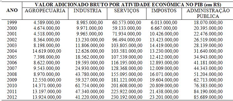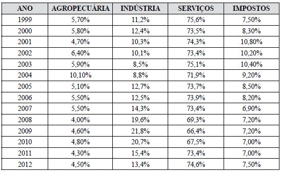 O indicador Produto Interno Bruto Municipal (PIB-M) além de ser responsável por apontar a distribuição da produção de receitas (capital) em um município, também deixa evidente a distribuição da população economicamente ativa que está trabalhando (formal ou informalmente), por setores de atividade (primário, secundário, terciário). Esse indicador passou a ser oficialmente utilizado no ano de 1999. No período compreendido entre os anos de 1999 a 2012, o principal setor produtor de capital no município de Ipiaú foi o setor terciário, que de forma disparada apresentou o maior percentual na produção de receita no município. Levando-se em consideração o valor adicionado bruto por atividade econômica no PIB-M a preços correntes em R$ (Tabela 6), a administração pública se colocava na segunda posição, atrás do setor de serviços. Os dados apontam uma realidade econômica dinâmica do município.