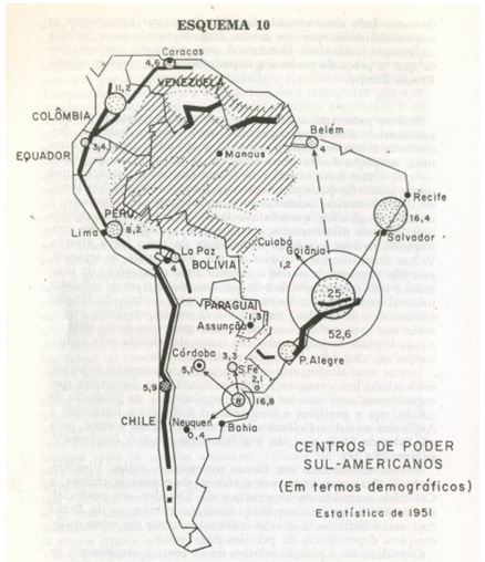 Para Golbery, o Brasil deveria ocupar uma posição de destaque, figurando como potência continental. Acreditava ainda em uma possível aliança com os Estados Unidos da América. Assim, é impossível separar as relações que o Brasil desenvolveu na região sem levarmos em consideração as relações diplomáticas e econômicas desempenhadas pelos Estados Unidos dentro do continente.