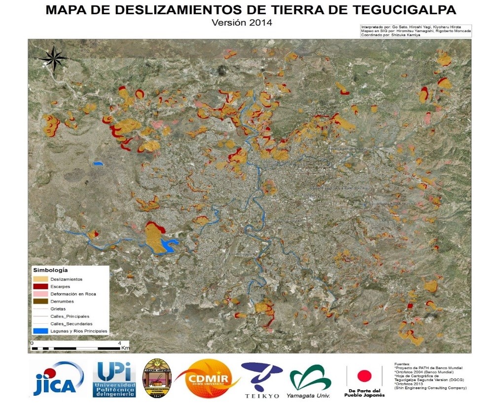 Dentro del marco de proyecto “Hazard Geology Focusingon Landslides in Tegucigalpa”, desarrollado por investigadores de la Agencia Internacional de Cooperación del Japón (JICA) con fondos de Sociedad Japonesa para la Promoción de las Ciencias (JSPS), entre 2012 y 2014, se propuso desarrollar un mapa actualizado del inventario de deslizamientos de tierra o movimientos de ladera (Yamagishi et al., 2014).