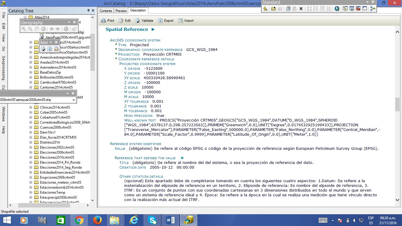 1.2.Utilizando la opción Define Projection de las herramientas de proyecciones se definió el tema como WGS84.