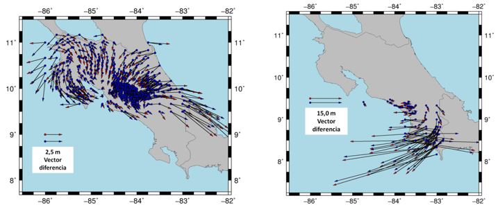 Los resultados de los cuadros 2 y 3 evidencian diferencias promedio de 265 m, confirmando los resultados dados por Dörries y Roldán (2004), como valor promedio entre el datum convencional de Ocotepeque y el datum CR98. El proceso indicado anteriormente, arrastra un error desde el inicio, ya que es incorrecto asumir que las coordenadas geodésicas corresponden al elipsoide WGS84. Se debe revisar cuidadosamente la fuente de los datos, ya que las ciudades cabecera de los distritos de Costa Rica, así como las esquinas noroeste de las hojas del mapa básico de Costa Rica, están referidas al datum Ocotepeque, elipsoide Clarke 1866.