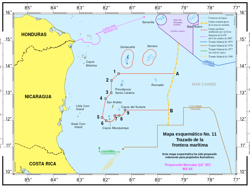 Cancillería Colombia. (2016). Controversia Territorial y Marítima (Nicaragua c. Colombia) 2001-2012. Recuperado el 25 Febrero de 2016, de http://www.cancilleria.gov.co/casos_corte/nicaragua_colombia