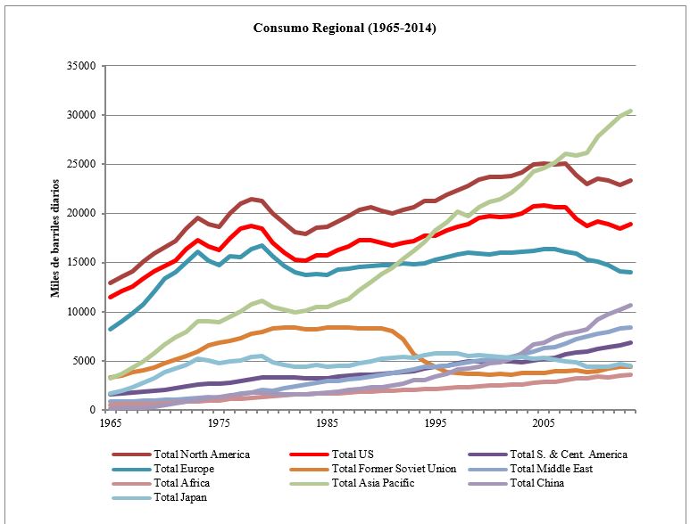 El mundo contemporáneo se caracteriza por mantener y expandir patrones de consumo en concordancia con la consigna de lo que significa el mundo globalizado. El petróleo no queda fuera de tal panorama. Sin embargo, su uso agudo y constante ha llevado a que las fuentes conocidas se agoten paulatinamente, esto ha traído consigo subsecuentes crisis, que se han reflejado tanto en el aumento de los precios en el mercado como en la expansión de las fronteras de exploración. Cabe mencionar que la colocación de los precios en el ámbito del mercado global casi nunca depende de las voluntades de los territorios de donde el crudo ha sido extraído; a pesar de que la Organización de Países Productores de Petróleo (OPEP) nace como respuesta a la hegemonía occidental tradicional sobre el control de este recurso. La dependencia que gran parte de la sociedad contemporánea tiene del petróleo es tal, que diversos conflictos se fundamentan en los intentos de controlar las fuentes de extracción y sistemas de distribución y comercio, para garantizar la provisión y mantener los stocks que favorezcan a ciertos países, que dentro del panorama internacional se han mantenido como grandes potencias desde el siglo XX, como EUA y los países de Europa Occidental. Junto a ellos, crecen recientemente en consumo del hidrocarburo China y Canadá.