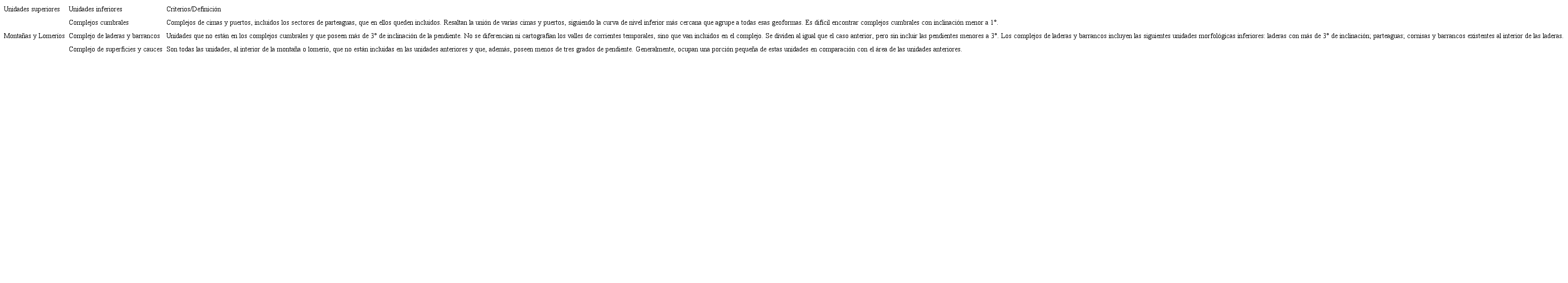 Posteriormente, se realizó un primer análisis de las unidades inferiores resultantes, resultando algunas generales, por lo cual, se prosiguió a detallarlas, generando nuevos grupos de unidades inferiores subdividiendo las geoformas ya existentes de acuerdo a la función y estructura de las unidades por delimitar y el aporte que tendrían al análisis dentro de la microcuenca (Tabla 4). Una vez definidas las unidades inferiores de relieve, se sobrepuso la capa de pendiente, indicando las más predominantes para cada unidad y clasificándolas de acuerdo a la tabla 5.