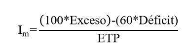En función a lo señalado anteriormente, Thornthwaite (1948) propuso una metodología para que los climas se ordenen de acuerdo al grado de humedad, al tomar en cuenta las necesidades hídricas de los cultivos (evapotranspiración); y con los resultados del Balance Hídrico Climático (BHC): excesos y déficits, se determina el índice hídrico (Im), mismo que permite agrupar el clima en una de las clasificaciones más usadas a nivel mundial
