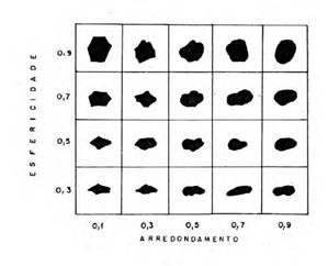 Por tanto, se aceptable calcular la redondez y esfericidad de una partícula comparándola con un grupo de modelos de referencia, donde, valores numéricos entre 0 a 1 determinan la proximidad de los clastos a un nivel de esfericidad y redondez altos (Robinson, 1990, p.350).