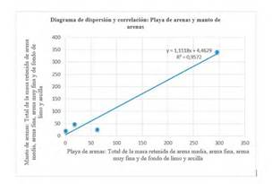Puesto que el material selecto estaba constituido por fragmentos de materia vegetal sobre el manto de arenas, y conchas sobre la playa de arenas, de los resultados de la tabla 2 , se eligieron las arenas del mesolitoral como variable independiente para evidenciar la correlación granulo-métrica entre éstas y el origen de los depósitos eólicos que componen el ambiente sedimentario; y como variable dependiente, se utiliza el total de la masa retenida de arena media, arena fina, arena muy fina y de fondo, la de limo y arcilla por geofacie (Figuras 6y7).