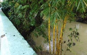 De esta forma una parte importante del caudal logra atravesar sobre el barrio Don Chu, para desaguar en una quebrada localizada al norte de la ciudad, entre el barrio Venecia y el barrio Real (Mapa 6). De esta forma, el flujo principal que sale del cauce rodea la ciudad en su parte más profunda.