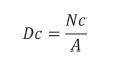 La Densidad de Corrientes (Dc), definido como la relación del número total de corrientes a la cuenca de drenaje, es decir representa el número de corrientes por unidad de área, fue computado de la siguiente manera: