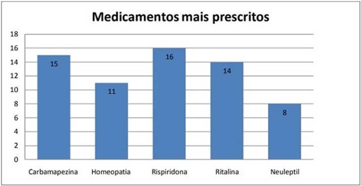 Os dados da pesquisa da ANVISA são corroborados em nosso levantamento. No quadro 6, o metilfenidato aparece como o medicamento mais utilizado para tratar os distúrbios relacionados ao comportamento nas fichas avaliadas.