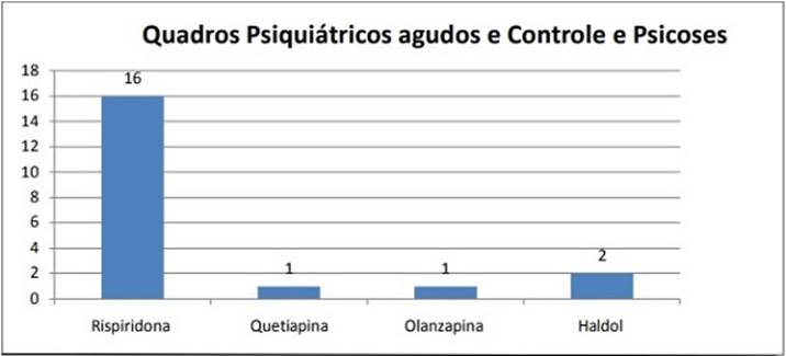 Importante mencionarmos o número elevado de crianças fazendo uso de Risperidona (quadro 7). Segundo a ANVISA, este psicotrópico é classificado como um antipsicótico atípico, indicado no tratamento de sintomas da esquizofrenia. Também há indicação em tratamentos de curto prazo para a mania aguda, ou episódios mistos associados ao transtorno afetivo bipolar; tratamento de transtornos do comportamento em pacientes com demência; tratamento de irritabilidade associada ao transtorno autista em crianças e adolescentes.
