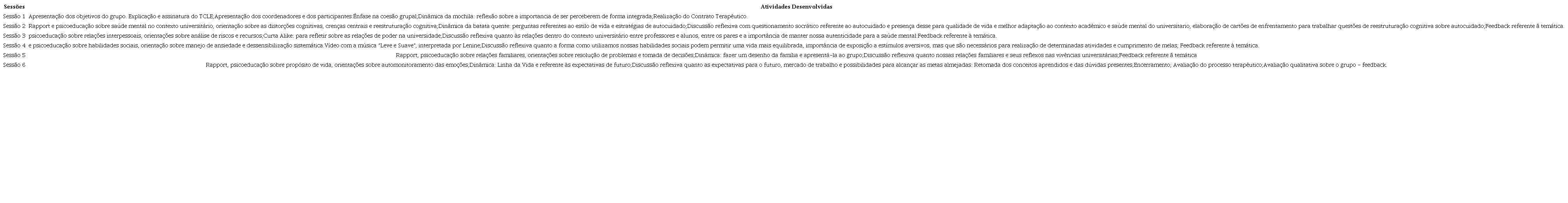 Palavras-chave: Psicoterapia em grupo, saúde mental, universitários, terapia cognitivo-comportamental em grupo.
