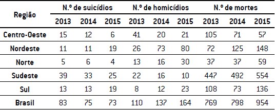Não nos sendo possível detalhar todos os dados, faremos a apresentação geral dos números referentes ao item “Integridade Física dos Presos” (como registrado nos relatórios e compilados para o âmbito nacional), acompanhados de alguns detalhamentos por regiões.