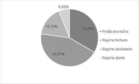 No Brasil, em junho de 2017 foram registrados 235.241 presos provisórios; totalizando 33,29% da ocupação de vagas no sistema prisional. Os presos que cumprem pena em regime fechado ocupavam 43,57% das vagas (Infopen, 2017). A presença de uma numerosa população encarcerada sem condenação é um dos gargalos do sistema, onde o número de presos é excessivo em relação ao número de vagas. Gráfico 1