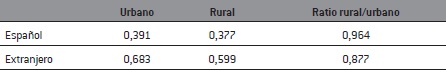 Los extranjeros en áreas rurales reducen sus diferencias respecto a los habitantes urbanos. El medio rural reduce el peso que tienen estas diferencias individuales y, en definitiva, iguala a sus habitantes en cuanto a probabilidades de exclusión, mientras que en las áreas urbanas estas diferencias se acrecientan.