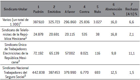 Mientras se daba este proceso de repudio, ese mismo sindicato corporativo, perteneciente a la CTM, enfrentó una decena de contratos legitimados, en los cuales obtuvo una mayoría de votos superior al 80%, en promedio, donde votaron más de 6.000 trabajadores.